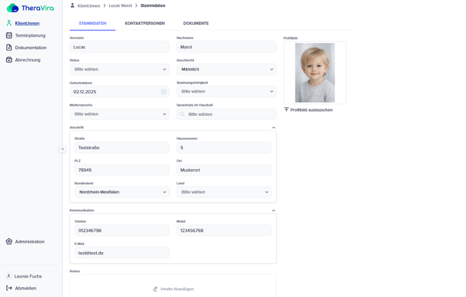 Übersichtliche Klient:innenakte mit allen relevanten Daten.