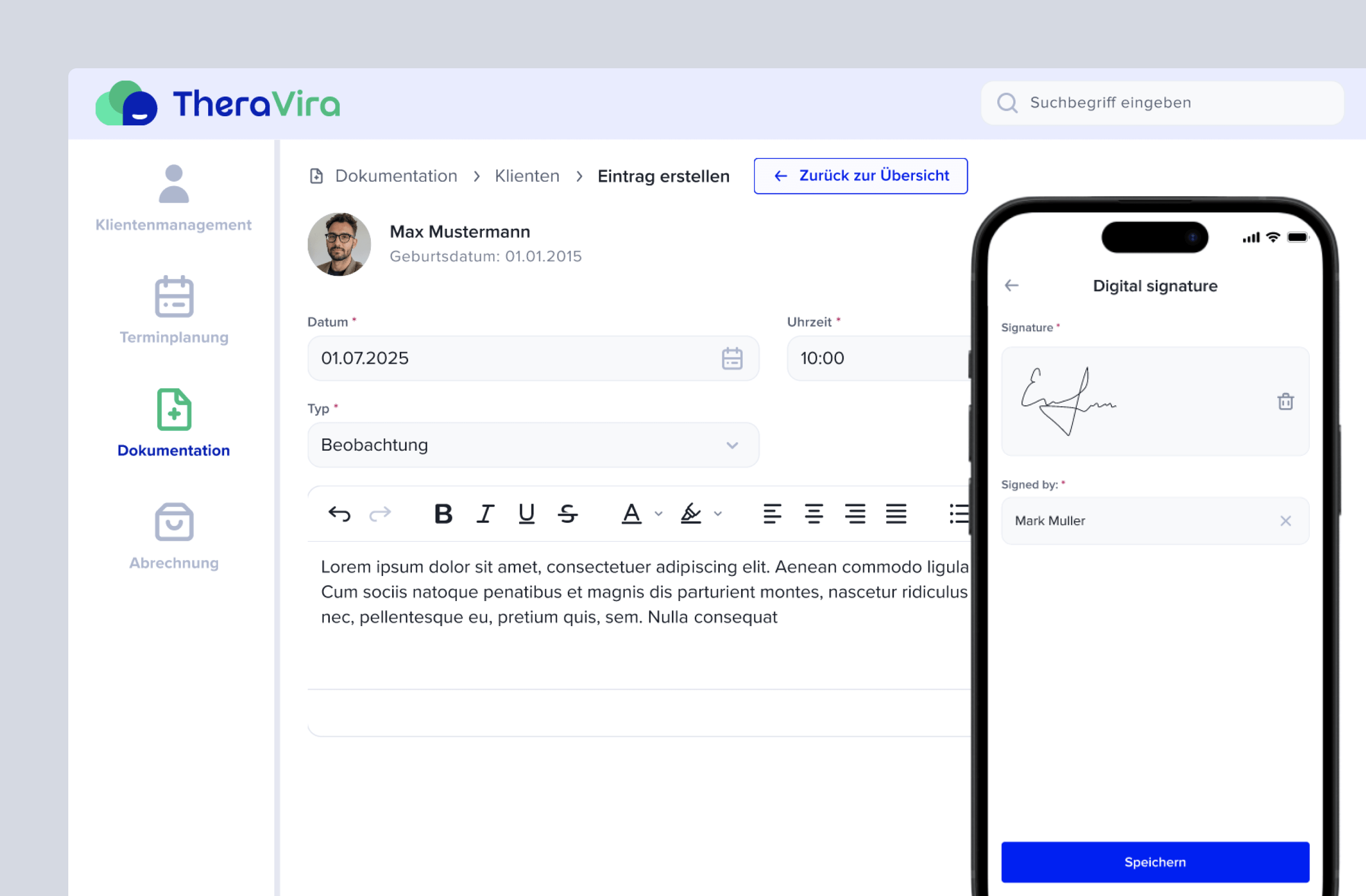 Sobald TheraVira im Einsatz ist, reduzieren Sie Bürokratieaufwand und gewinnen Raum für das Wesentliche.